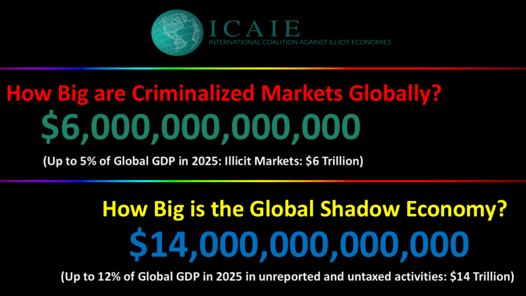 How big are Criminalized (Illicit) Markets Internationally and the Global Shadow Economy? In 2025, the International Monetary Fund (IMF) projected that the Global GDP was estimated to reach approximately $117 Trillion in nominal terms. According to ICAIE’s own research in the past two years, the global illegal economy consisting of an array of illicit markets and illicit…